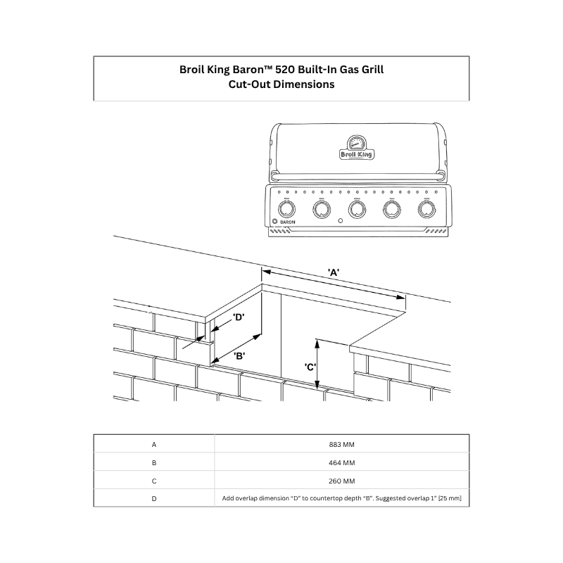 The Broil King Baron™ 520 Built-In is designed for outdoor kitchens that require more cooking space and powerful performance. With five stainless steel Dual-Tube™ burners, cast iron cooking grids, and a Flav-R-Wave™ cooking system, it delivers even heat distribution and consistent grilling results.